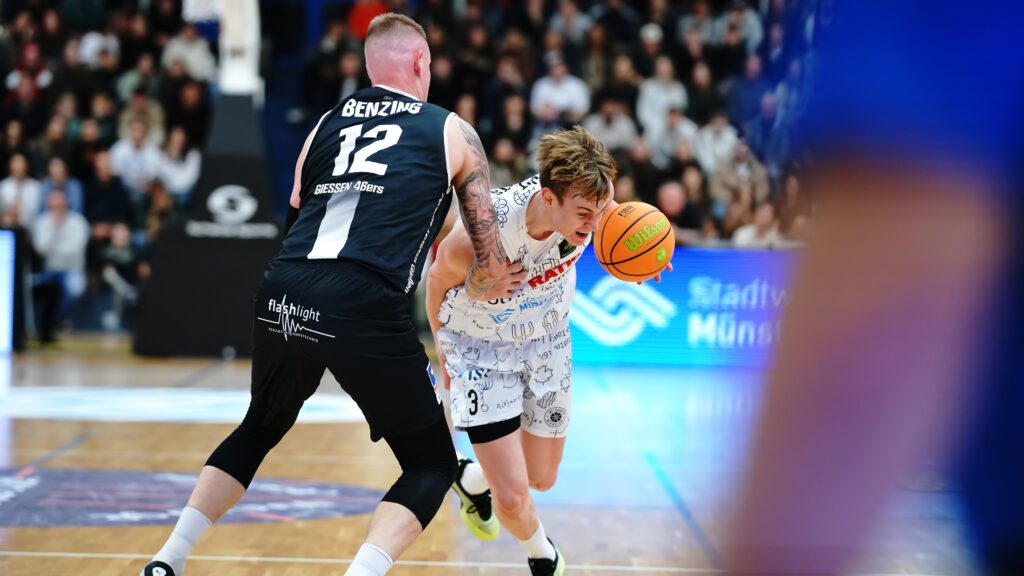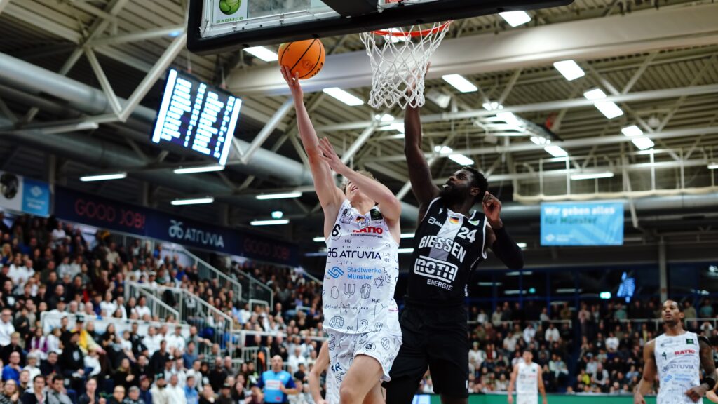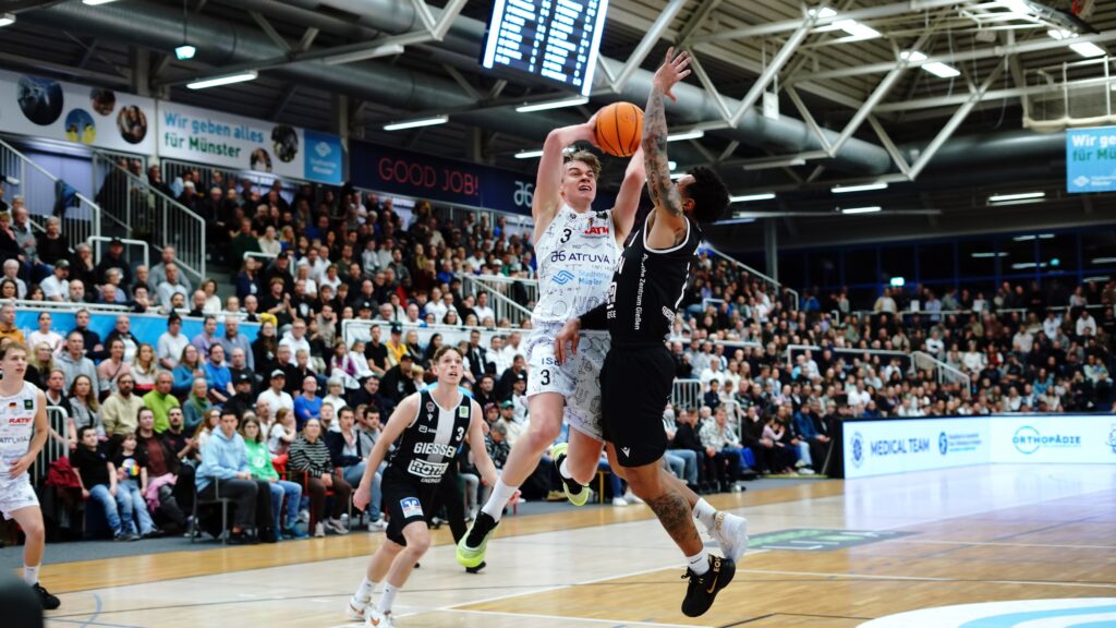 Nach der 61:57-Führung durch Julian Larry versäumten die Münsteraner mehrfach die Vorentscheidung, bekamen den Foulpfiff gegen Larry nicht (5:14 Freiwürfe), begingen selbst ein ungeschicktes Offensivfoul und mussten den bitteren letzten Korbleger 3,7 Sekunden vor der Schlusssirene von Kyle Castlin trotz guter Verteidigung schlucken. Keine Overtime! Vorbei. Und doch ein neuer Anfang! Dieser Auftritt hat im nächsten Heimspiel am Nikolaustag gegen Paderborn ein ausverkauftes Haus verdient – zumal mit „Wessi“ dann ein ganz großer des Münsteraner Basketballs offiziell verabschiedet wird.