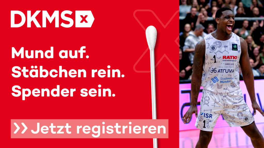 Die Uni Baskets Münster rufen beim Heimspiel gegen Nürnberg Falcons BC (10. Januar, 19.30 Uhr) zu einer DKMS-Registrierung in der Halle Berg Fidel auf.