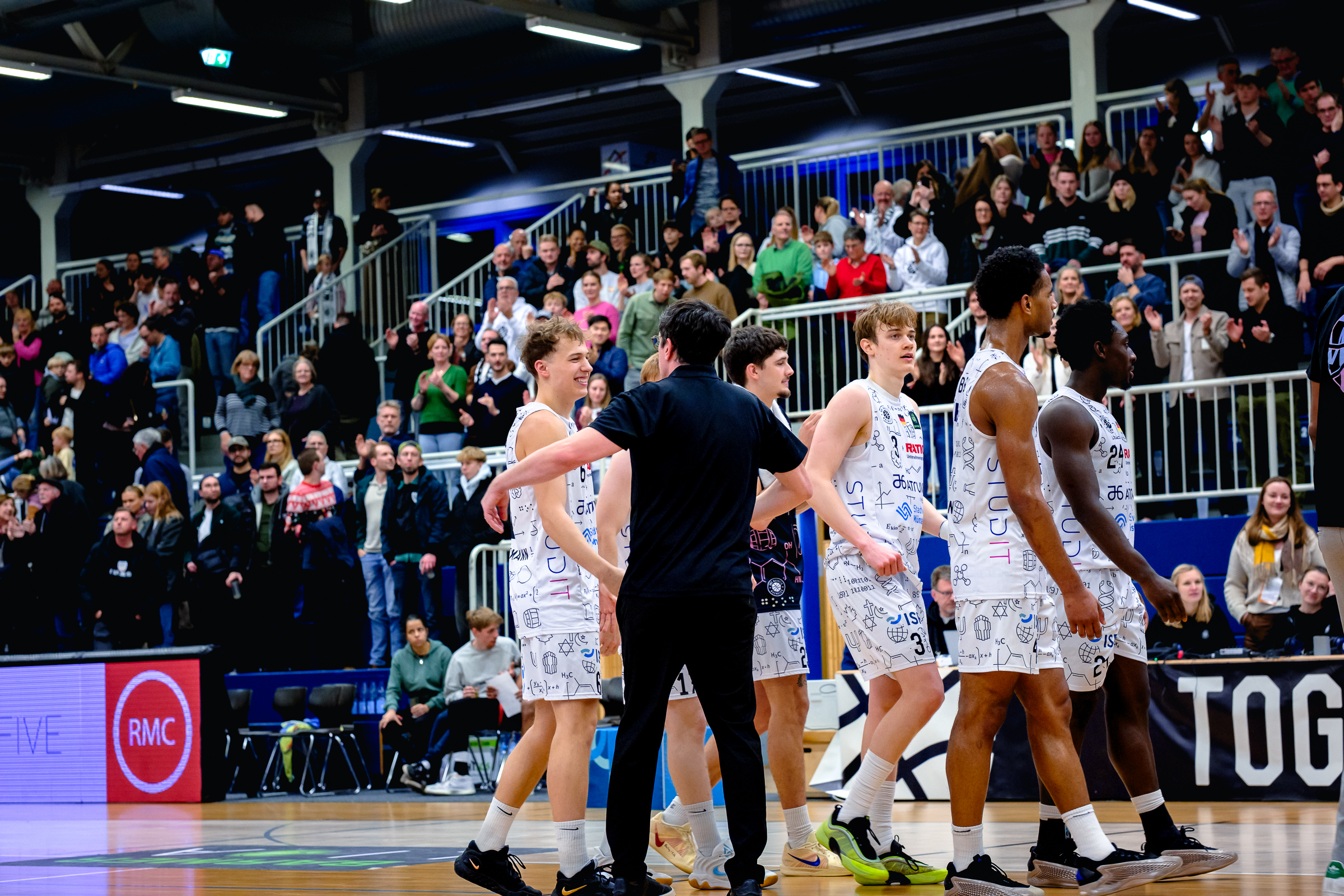 Über die zweite Halbzeit und den 19-jährigen Thore Dilschmann: „Das hat mir sehr gefallen, wie wir im dritten und vierten Viertel gespielt haben. Thore vor allem. In seinem Alter, in so einem Spiel, wo so viel Druck dahinter ist, er die Dinger macht, wo ich denke: Wow! Ich traue ihm und bringe ihn auch, weil ich weiß, was er kann. Das war eine megawichtige Phase, in der er die Dinger gemacht hat. Es tat mir fast schon leid, dass ich ihn danach nicht so gebracht habe, aber es lief einfach. Julian hat auch gut gespielt und wir hatten Rhythmus. Defensiv haben wir es überragend gemacht. Wir haben toll gereboundet und ihnen in der zweiten Halbzeit nichts mehr gegeben. Das war der Schlüssel zum Spiel.“