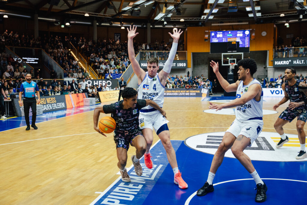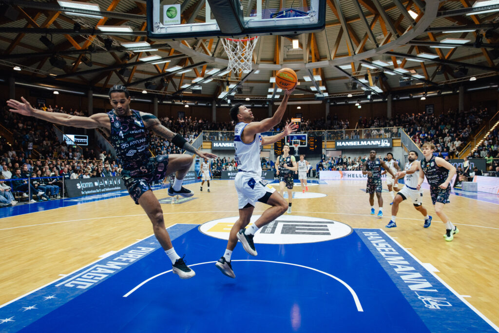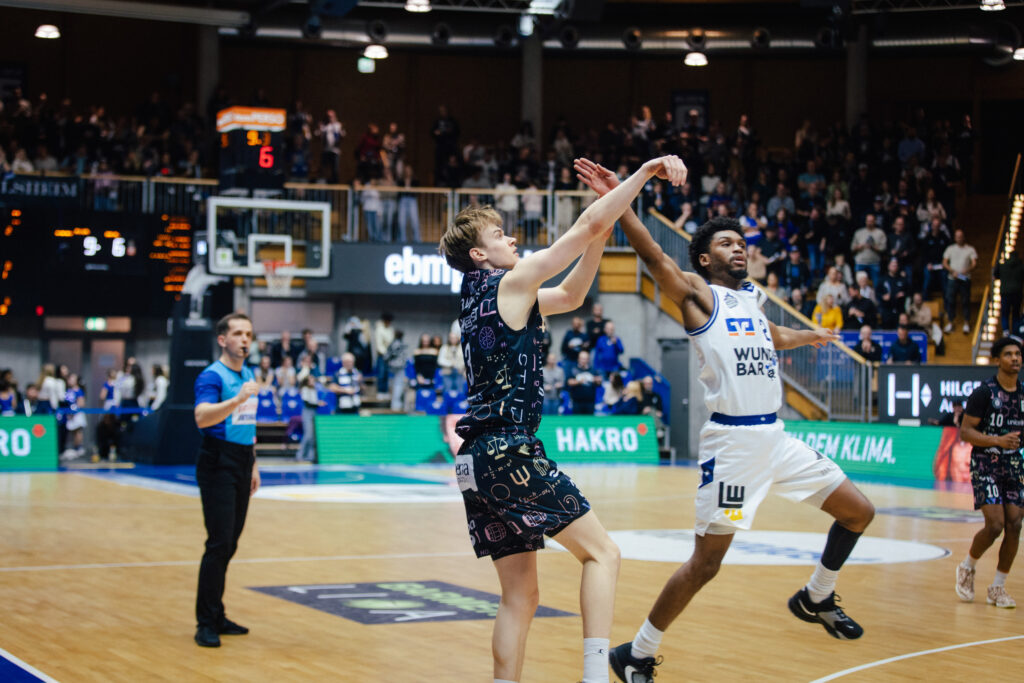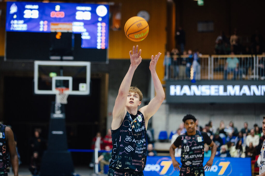 Cosmo Grühn war eine Trainingswoche weiter, während der erkrankte Caleb Zurliene nicht zur Verfügung stand. Den Uni Baskets fehlten die Langzeitverletzten Adam Touray und Julius Ferber ohnehin. Der Gast aus Münster erwischte einen guten Start (3:5, 3.). Nick McMullen und Julian Larry hatten gepunktet. Er war auch Mitte des Auftaktviertels nach einem Dilschmann-Dreier gut im Spiel (11:10) und wusste über schnelle Ballbewegung zu gefallen. Die Uni Baskets kassierten dennoch den Rückstand (17:12), konterten dank guter Defensive und zunächst gutem Rebounding mittels zweier Dreier von Andrew O’Brien und Neil Masnic zur knappen Münsteraner Viertelführung (17:18).
