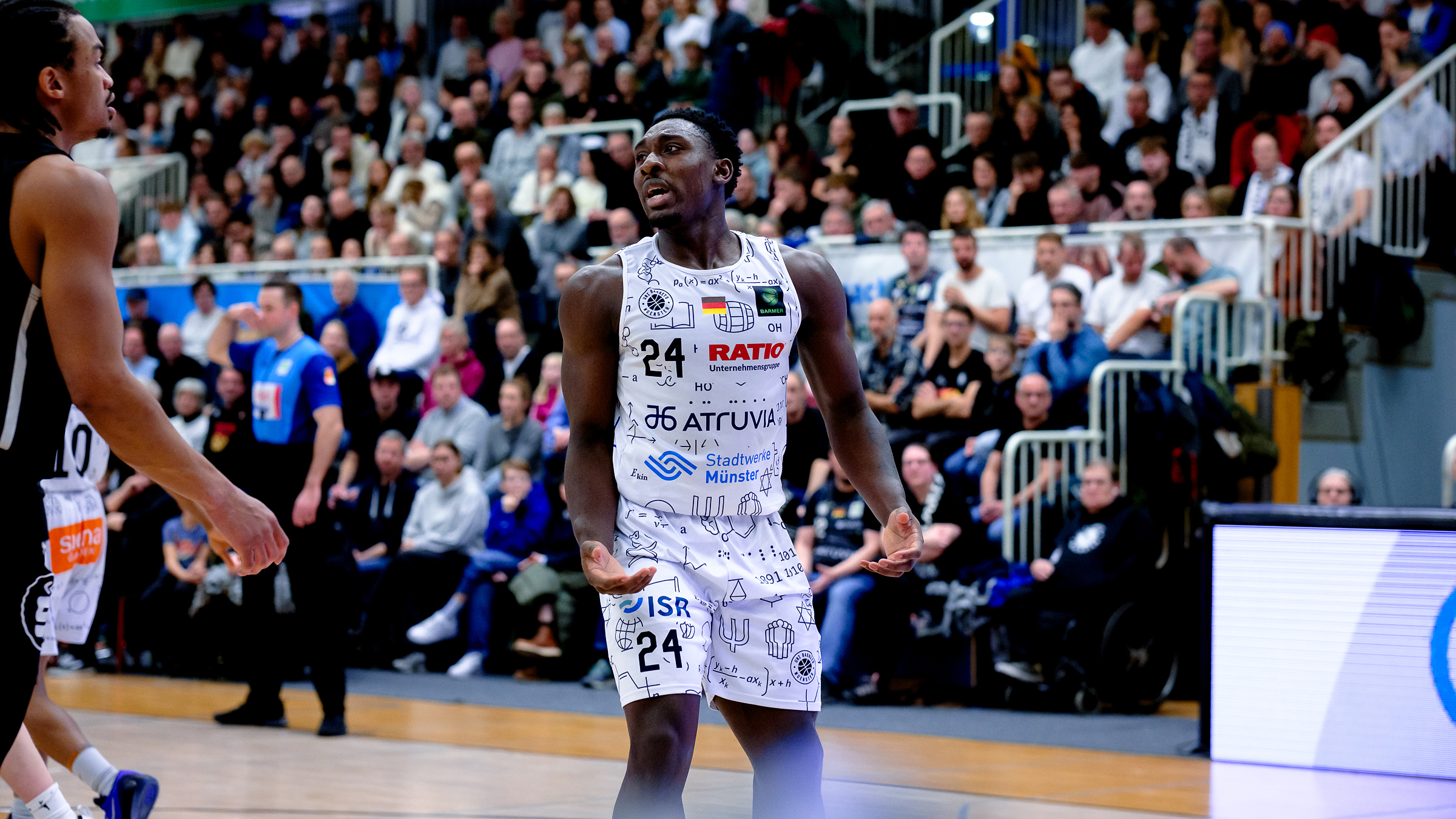 Samstagabend fehlten erneut die Leistungsträger Adam Touray, Bo Hodges und Julius Ferber. Der kurz zuvor verpflichtete Neuzugang Philip Alston (zur Meldung) saß bereits unter den Fans hinter der Teambank. Mit einem 12:9-Start (5.) zeigten sich die Uni Baskets zunächst unbeeindruckt von der Unzufriedenheit mit dem bisherigen Saisonverlauf. Oli Pahnke und Andrew hatten über feine Lay-ups gescort, Cosmo Grühn stellte mit seinem ersten Distanztreffer auf die 3-Punkte-Führung. Nur gut zwei Minuten später hieß es 14:23, die Verteidigung bot Räume an, offensiv blieben Korbleger liegen. Doch der verlorengegangene Fokus kehrte mit dem Shotclock-Dreier von Paul Viefhues zurück, der auch den Buzzer-Dreier zum 23:23-Ausgleich nach Abschnitt eins setzte.