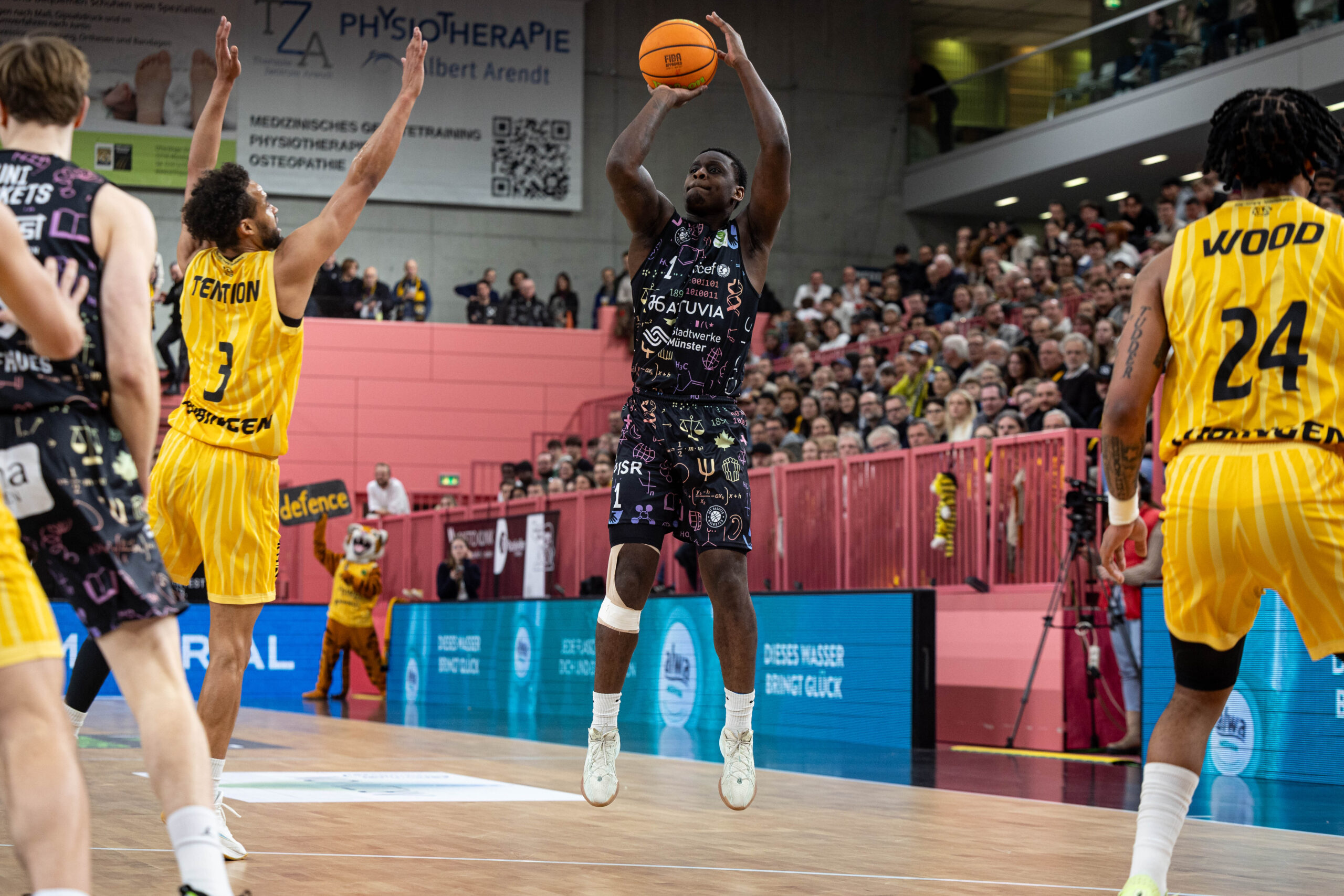 Mehr Tübinger Energie musste fortan in der Verteidigung gematcht werden. Trotz des guten Einstiegs in die zweite Hälfte (30:47, 32.) geriet Münsters Defensive in eine Phase der Unordnung (36:48, 34.), wusste diese jedoch schnell wieder in die richtigen Bahnen zu lenken. Andrew O’Brien setzte wichtige, auch ästhetische Akzente per Euro-Step-Abschluss – nach sechs Zählern nacheinander und einem Dreier-Assist für Neil Masnic zur nächsten 18-Punkte-Führung (44:62, 28.). Die ruhig gespielte Paul Horn-Arena erwachte, als die Tübinger plötzlich das Feld weit machten und erfolgreich Dreier zu einem 11:0-Lauf warfen. Nur noch 55:62 vor dem Schlussviertel.
