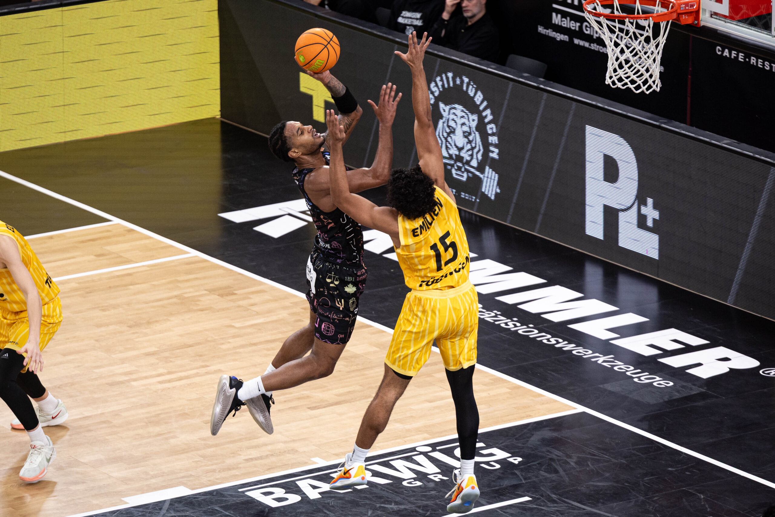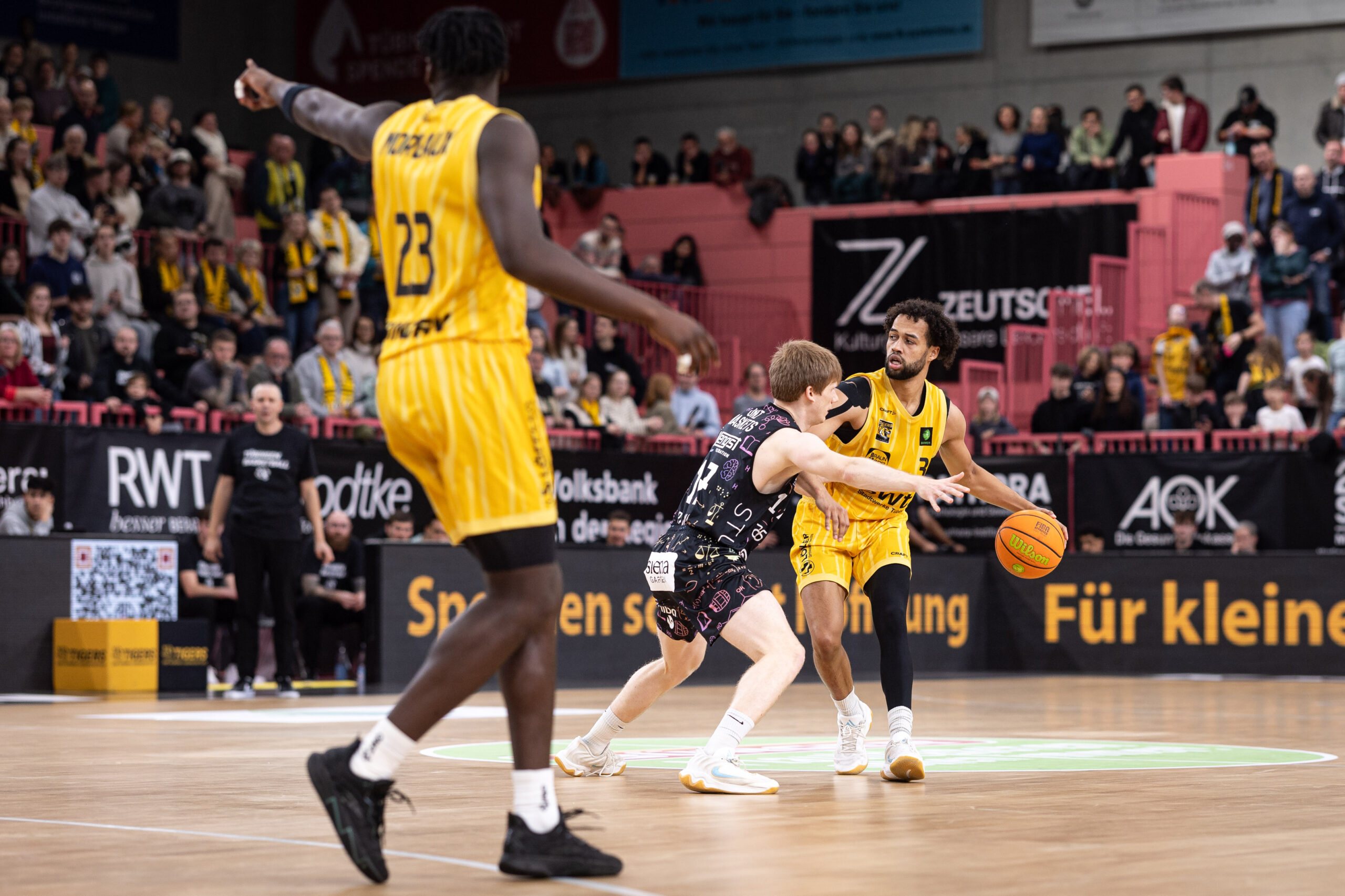 In Tübingen fehlten Cheftrainer Götz Rohdewald weiterhin Adam Touray und Julius Ferber und nach drei Spielminuten auch Bo Hodges. Erstmals in der Starting Five übernahm Oliver Pahnke den defensiv vorangehenden Part und zog seine Mannschaft zu den defensiv besten Saisonminuten mit. Sage und schreibe knapp sechs Minuten gestatteten höchst aggressiv verteidigende Uni Baskets den Tigers keine Zähler. Ihre 11 Defensivrebounds im Auftaktviertel waren ein markiges Statement. Der gelungene Einstieg über Nick McMullen am Brett und von jenseits der Dreierlinie, der Steal und Fastbreak von Julian Larry und per Dunk von Andrew O’Brien zwangen die Tigers zur ersten Auszeit (0:9, 4.).