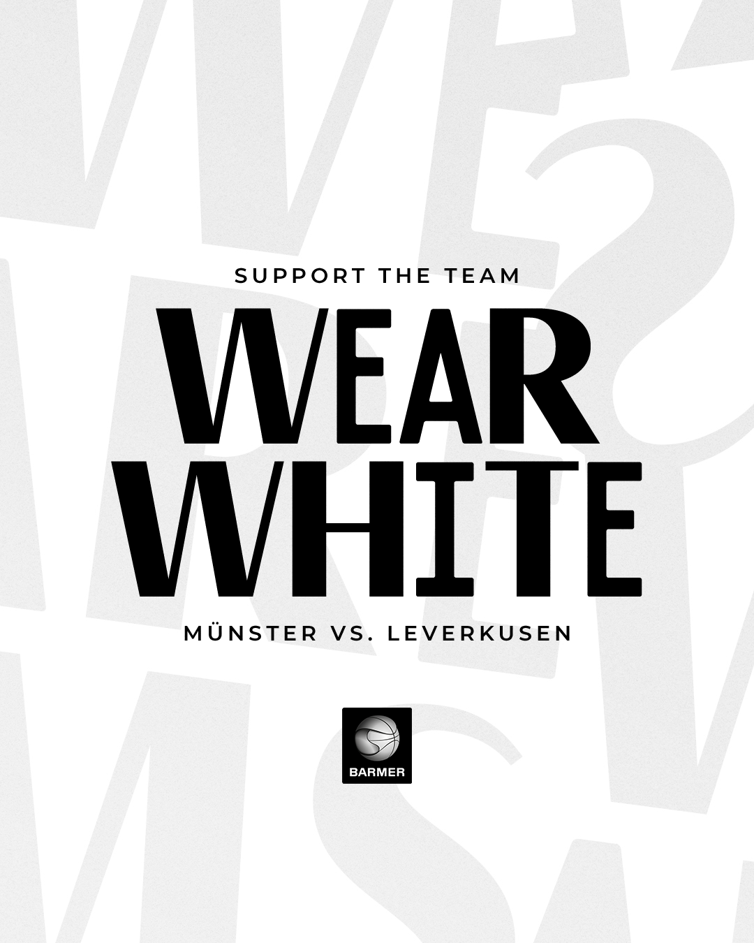 „Wear white“? Da war doch was. Sowohl die Fans der Uni Baskets als auch der Giants schwärmen bis heute von den beiden Playoff-Finals 2019 in der ProB. Es waren trotz aller sportlichen Rivalität zwei wunderschöne Basketballfeste. Alle Baskets-Fans waren damals weiß gekleidet, sowohl in der Halle Berg Fidel als auch in Leverkusen. Ein Foto der „weißen Wand“ von damals ziert heute noch eine ganze Wand des Meetingraums in der Geschäftsstelle der Uni Baskets. Lasst uns als Zeichen der Verbundenheit für diese wegweisende Partie am Samstag wieder alle zur „weißen Wand“ in der Halle Berg Fidel zusammenkommen! Mannschaft und Trainerteam würden sich über dieses Zeichen der Unterstützung riesig freuen!