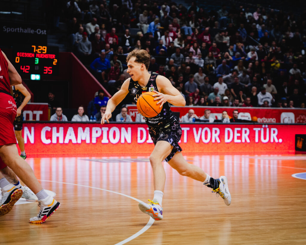 Paul Viefhues: „Es ist natürlich keine leichte Aufgabe, in Gießen zu spielen, aber ich denke, dafür haben wir es wirklich sehr gut gemacht. Jeder einzelne hatte einen wichtigen Anteil daran, dass wir am Ende gewonnen haben. Wir haben weitestgehend als Team auch echt gut verteidigt und offensiv über weite Strecken die Sachen gemacht, die wir machen wollen. Das ist ein sehr wichtiger Sieg, nicht nur was die Tabelle angeht, sondern auch für unser Selbstbewusstsein im Hinblick auf die anstehenden Spiele.“