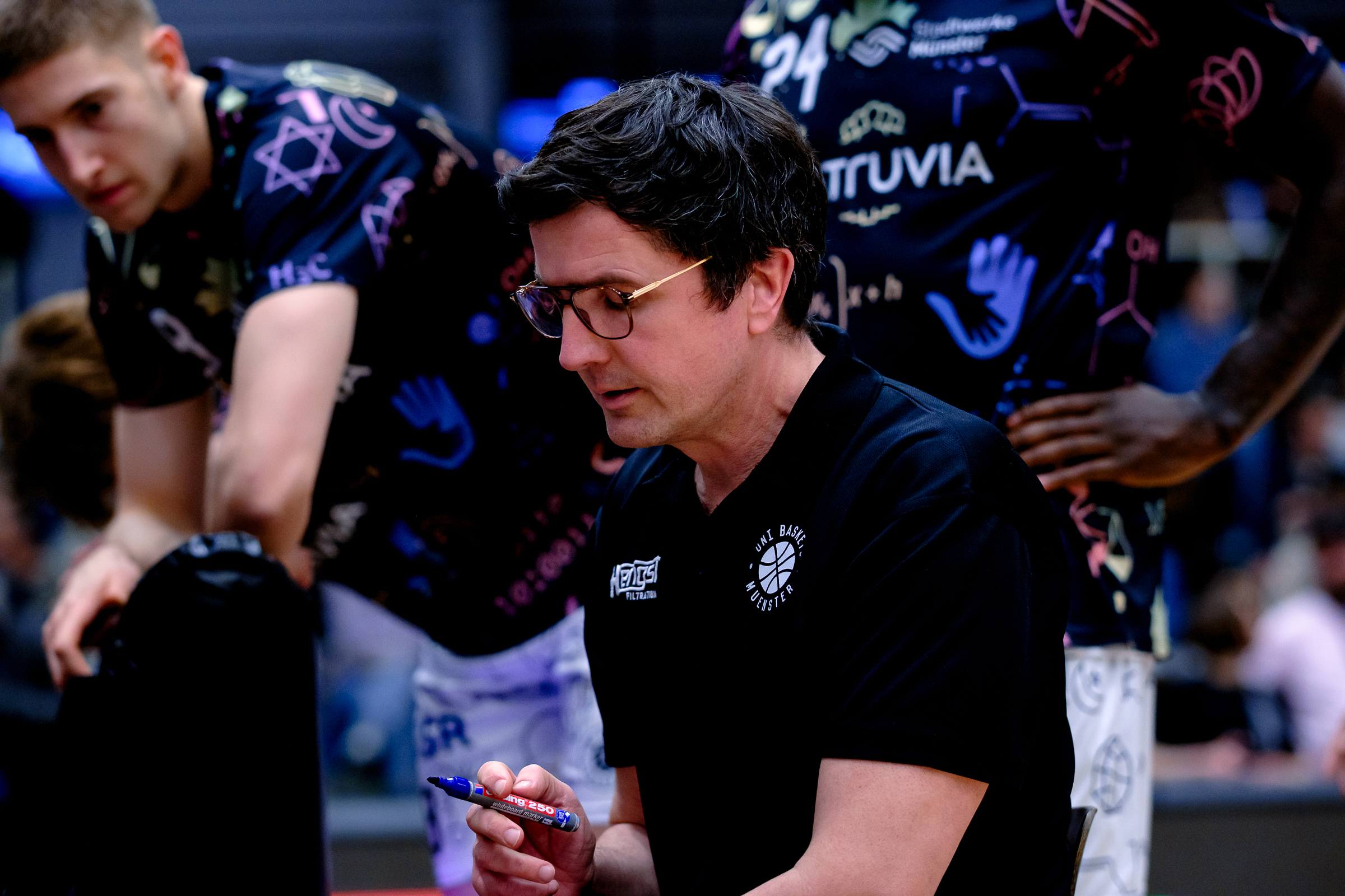 Götz Rohdewald, Cheftrainer der Uni Baskets: „Ich bin stolz auf die Mannschaft, dass wir nach so einem weiteren Nackenschlag mit dem Ausfall von Deshon, womit wir schon das ganze Jahr umgehen müssen, in Gießen, in einer der schwersten Hallen, gegen eine ganz erfahrene Truppe das Spiel so herunterspielen. Und dass wir am Ende auch einmal ein knappes Spiel gewinnen, nach all den knappen Spielen, die wir bisher verloren haben. Thore macht ein Hammerspiel in so einer Halle mit so einer Atmosphäre. Ich bin einfach froh und stolz. Ich glaube, dass wir das mehr verdient haben als jede andere Mannschaft in der Liga, dass wir so ein Spiel gewinnen. Wir haben es heute nach Hause gefahren, obwohl da Szenen dabei waren, wo man hätte sagen können: Jetzt fangen wir an zu wanken oder zu zweifeln. Wir haben nicht gezweifelt, sondern weitergemacht.“