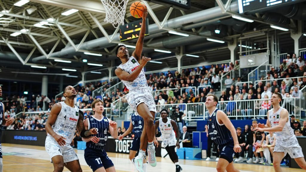 Baskets-Scorer Nummer sieben Andrew O’Brien und Julian Larry warfen die Uni Baskets unter dem ersten Jubelsturm 33:24 (13.) mit Dreiern nach vorn. Der 8:0-Einstieg ins zweite Viertel gab den Münsteranern weiteren Rückenwind. Sie behaupteten über Reboundvorteile und die zunehmende Dreierquote im Verlauf der ersten Halbzeit die 9-Punkte-Führung auch nach 16 Spielminuten (42:33). Paul Viefhues hatte sein erstes Statement per Block und seinen Distanztreffer im Gegenzug gesetzt. Es sollten weitere folgen. Ballverluste verhinderten eine durchaus mögliche höhere Führung zur Pause (47:42).