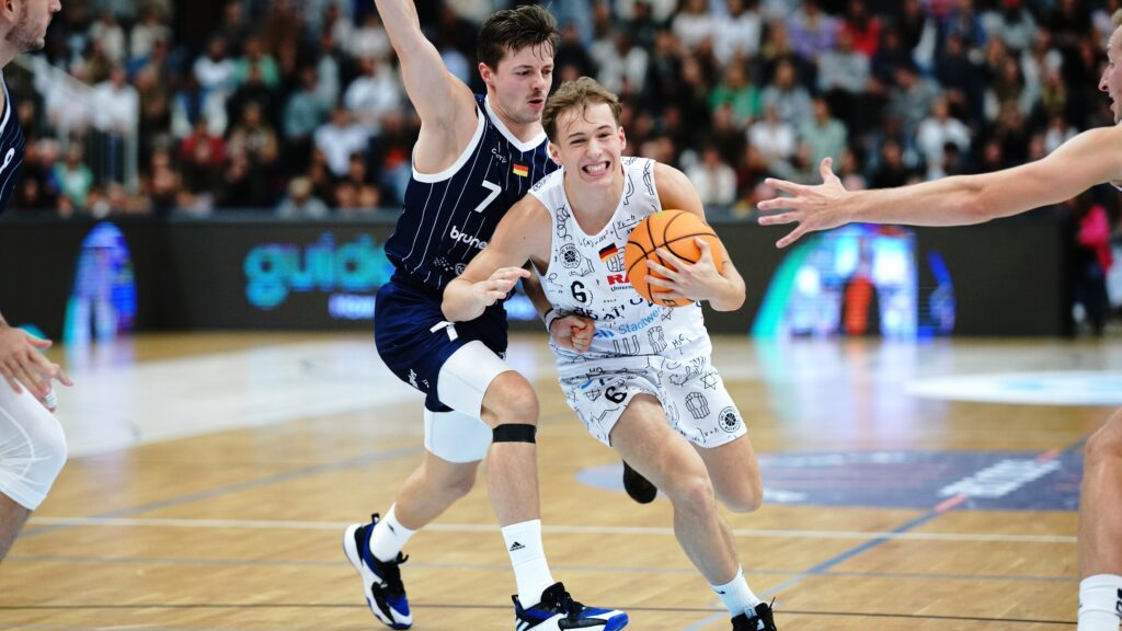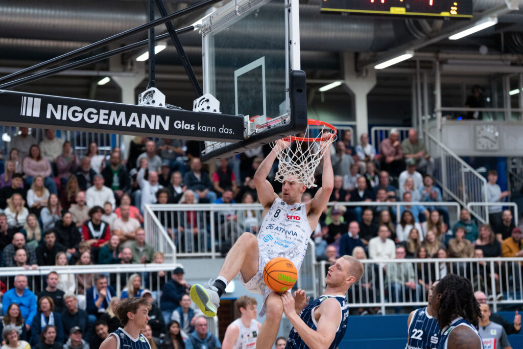 Zwei Ballverluste und schnelle Fouls zum Start in die letzten zehn Minuten nutzten die Bochumer jedoch eiskalt aus und machten sich auf die Aufholjagd gegen sich zu sicher fühlende Baskets. Sie ließen im Rebounding nach, wurden in der Defensive zu passiv. Nach fünf Zählern von Niklas Geske und einem Grof-Korbleger hatte der VfL bereits auf 84:74 (33.) verkürzt. Näher auf Sicht kam der Nachbar in den Folgeminuten aber bis zum 91:80 (38.) nach Ani-Freiwurf nicht. Neuzugang Caleb Zurliene hatte seine ersten Zähler im Profibasketball erzielt, einen defensiven Block gesetzt und sorgte über einen Freiwurf für den ungefährdeten 92:86-Erfolg.