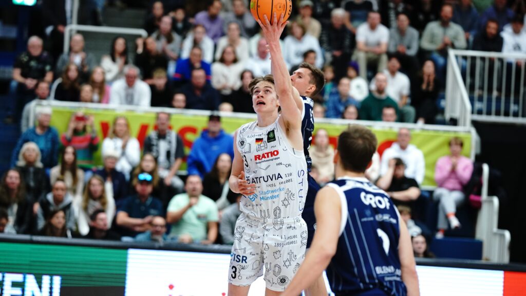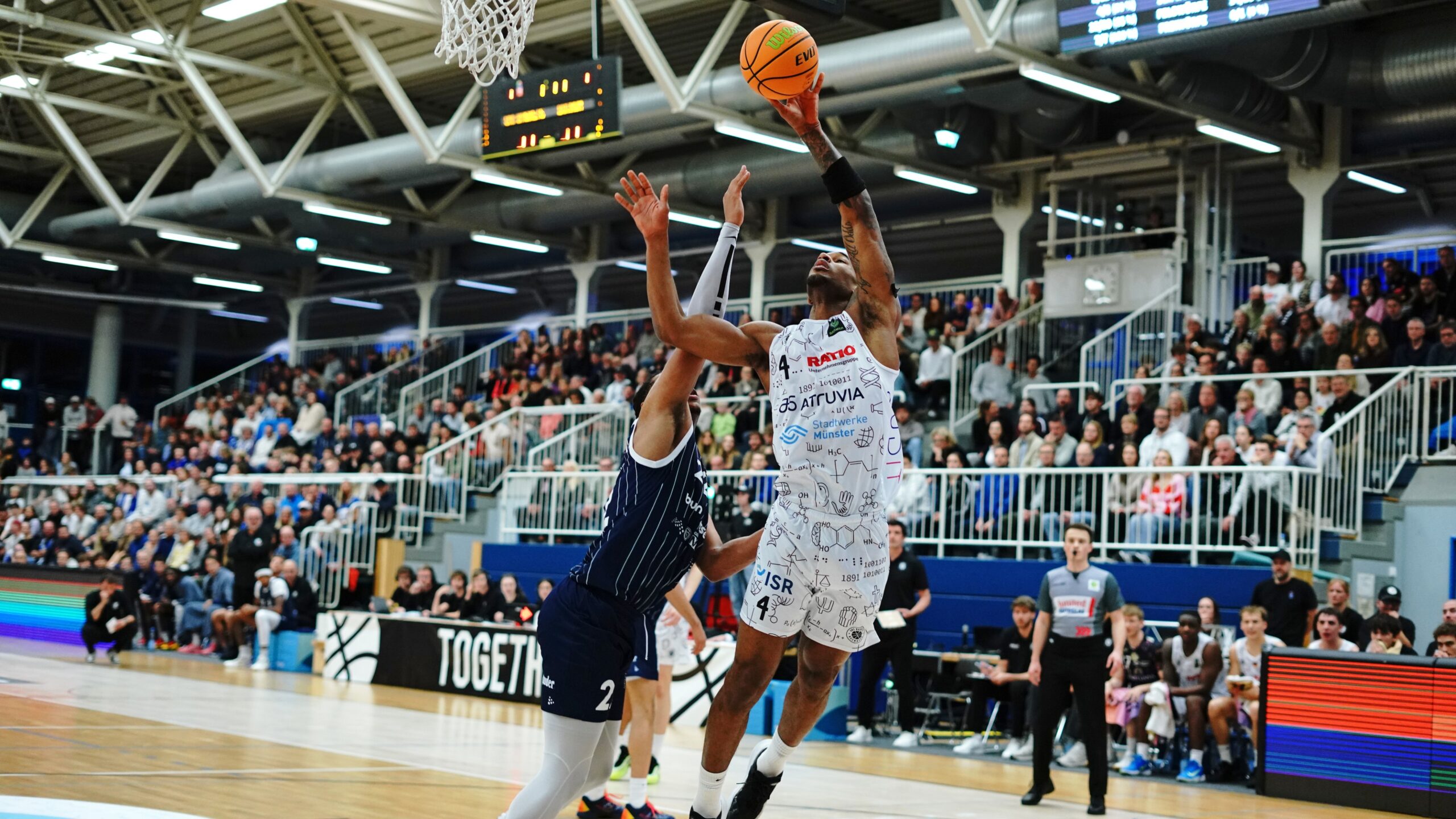 Mit verändertem Line-up – Neuzugang Zurliene debütierte im zweiten Viertel, weiterhin aber ohne Drei (Grühn, Ferber und Touray) – erwischte der Gastgeber nach feinem Anspiel Julan Larrys auf Nick McMullen einen 10:4-Start (4.). Flinke Münsteraner Hände ermöglichten Ballgewinne und die höchste Führung des Auftaktviertels (16:9, 6.), ehe offene Dreier nicht fielen, sich Ballverluste einschlichen und der Einfluss in der Zone schwand. Die Gäste erhöhten nun deutlich die Physis, kamen immer wieder ans Brett und so zum Führungswechsel (23:24). Neil Masnic, bereits der sechste Münsteraner Scorer, konterte noch vor der Viertelpause des für die Fans attraktiven High-Scoring-Auftakts (25:24).