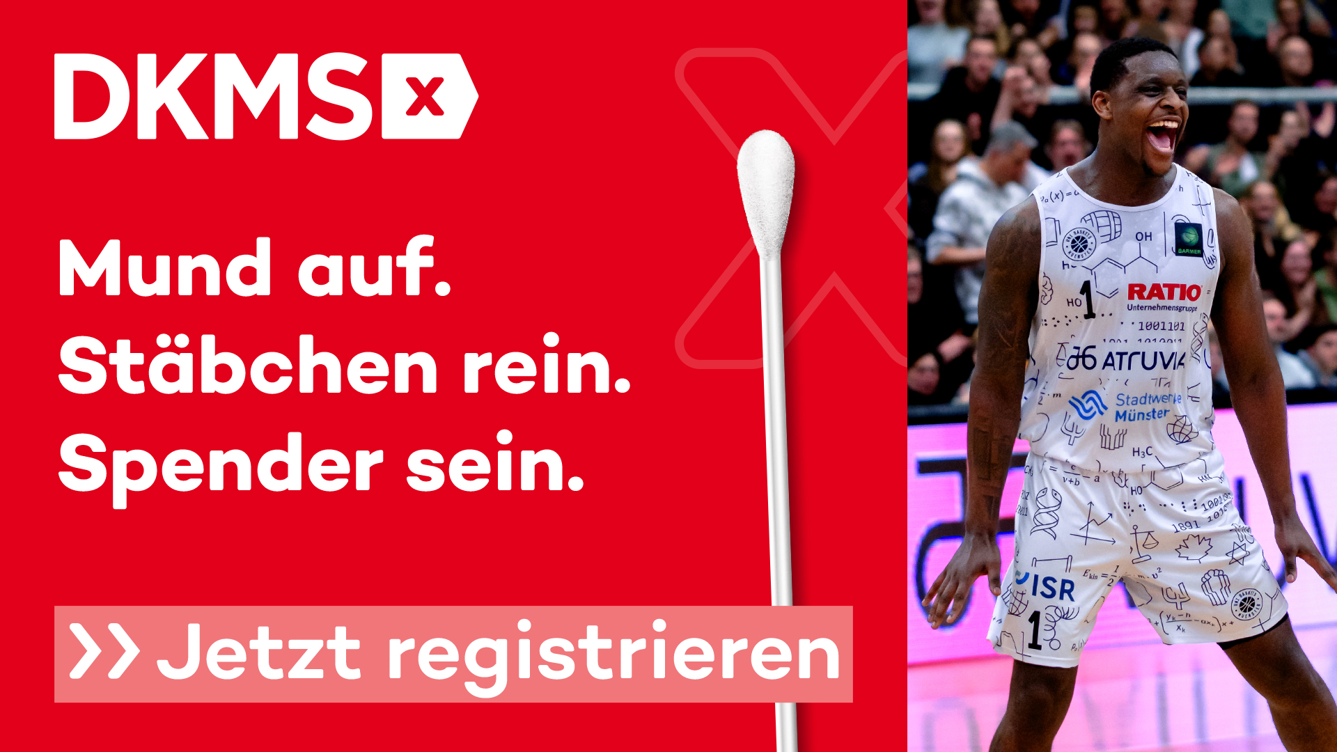 Die Uni Baskets Münster rufen beim Heimspiel gegen Nürnberg Falcons BC am kommenden Samstagabend (10. Januar, 19.30 Uhr) zu einer DKMS-Registrierung in der Halle Berg Fidel auf. Werde potenzielle:r Lebensretter:in! Auch die Universität Münster ruft regelmäßig zur DKMS-Registrierungsaktion auf. Mit der Unterstützung eines sogenannten genetischen Zwillings kann die Leukämie bekämpft werden.