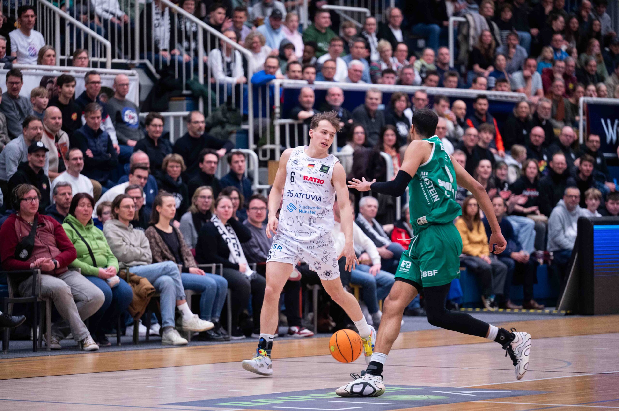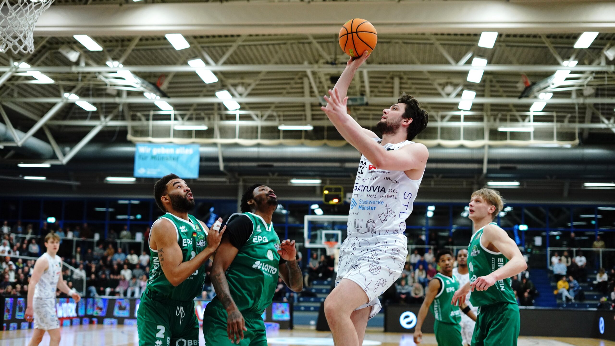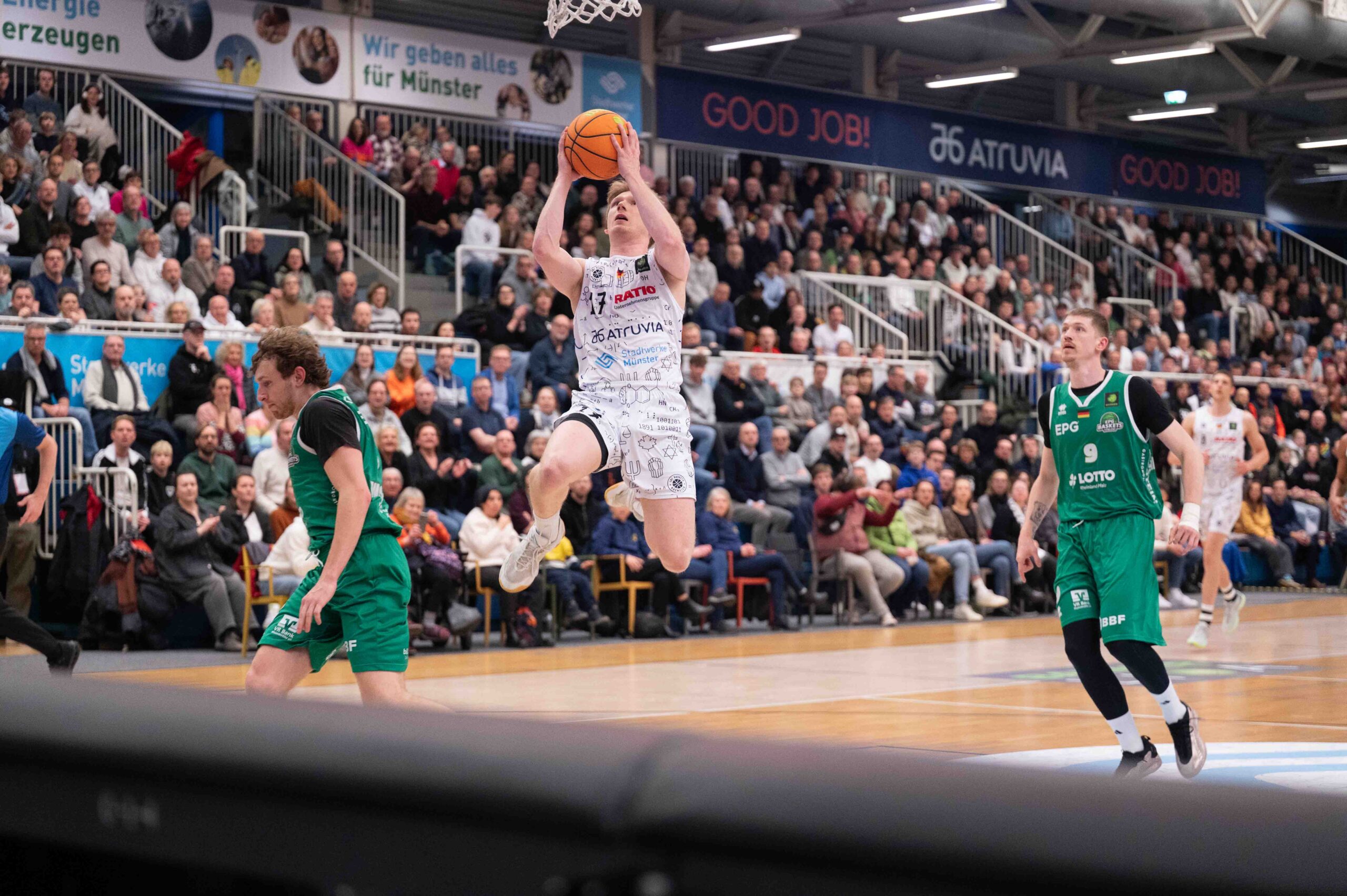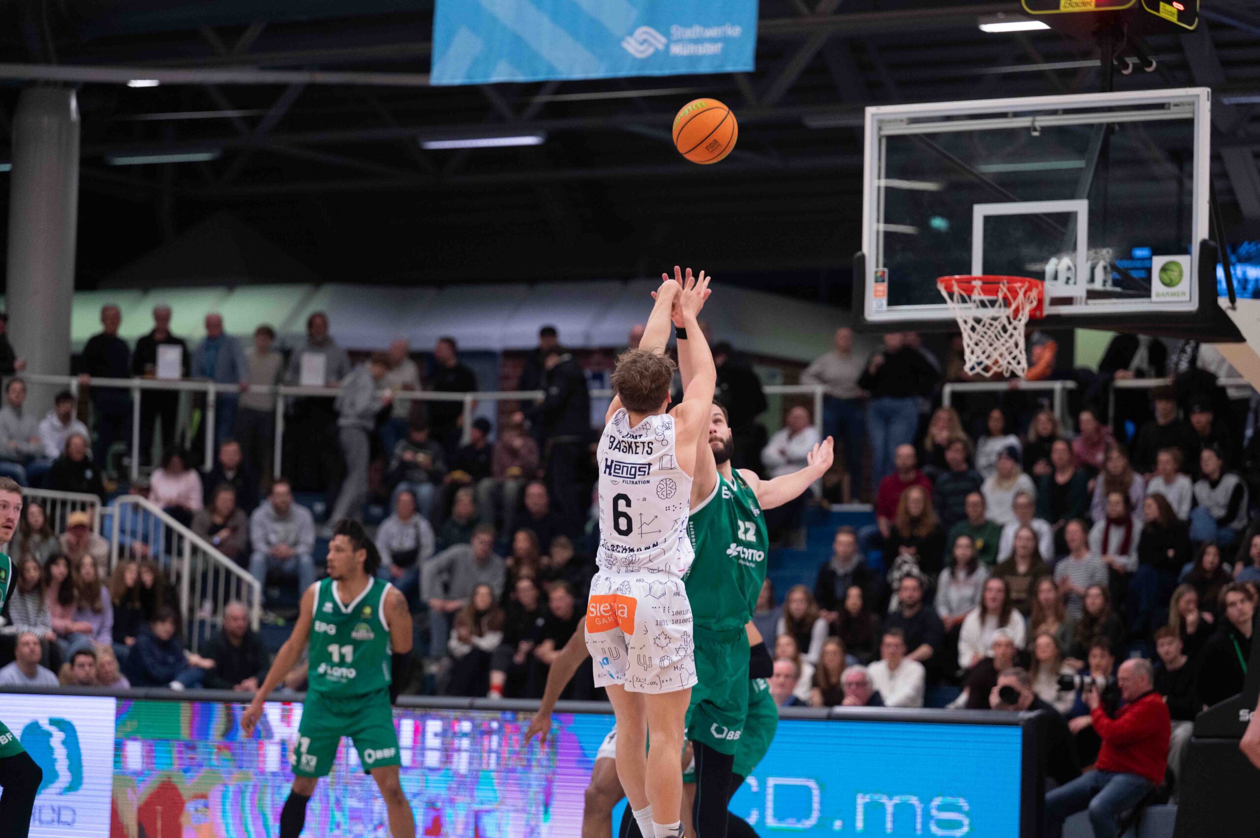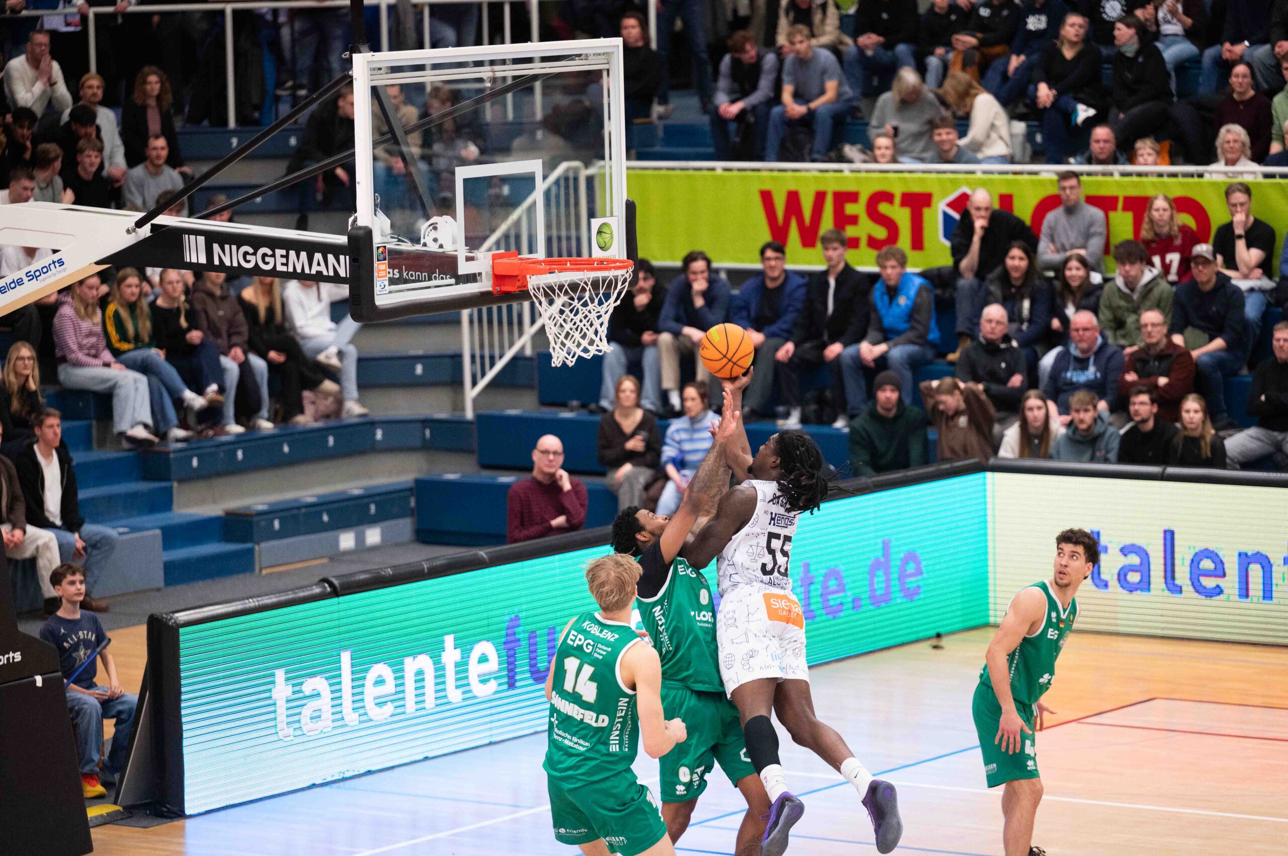 Dort wandelte sich das Bild zunächst noch nicht. Die Partie war länger ausgeglichen, der Rückstand der Münsteraner knapp. 53:57 (24.) und 58:62 nach dem nächsten Dreier von Thore Dilschmann und dem Fastbreak-Dunk von Neil Masnic (25.). Offense blieb im dritten Viertel dann richtig Arbeit, zu selten erfolgreich. Anders die Gäste, die ihre spielerischen Vorteile (16:9 Assists, 7:15 Turnover nach dem dritten Viertel) erneut in eine zweistellige Führung ummünzten. Die ersten vier Zähler von Neuzugang Curtis Jones Jr. für die Uni Baskets zum Ende des dritten Viertels reichten für einen 10-Punkte-Rückstand (65:75).