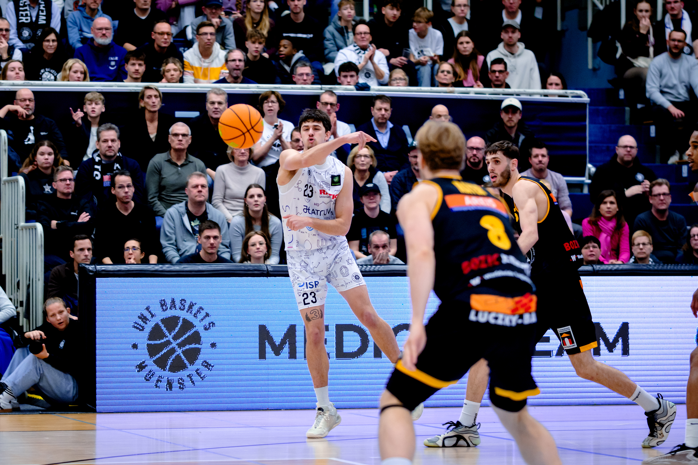 „Caleb hatte die ganze Zeit mit Problemen im unteren Rücken zu kämpfen, die ihn nie die 100 Prozent seiner Qualitäten haben erreichen lassen“, erläuterte Helge Stuckenholz die Beweggründe. „Als er sagte, er würde gerne das Kapitel in Münster beenden, Weihnachten bei seiner Familie sein und wieder komplett fit werden wollen, haben wir seinem Wunsch entsprochen. Für seine Zukunft wünschen wir ihm nur das Beste“, sagte Helge Stuckenholz, Manager der Uni Baskets.